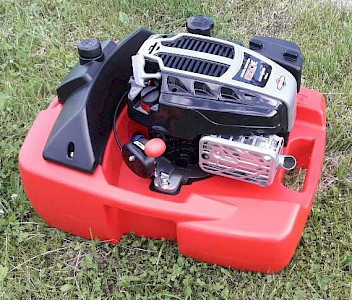 Technické informace: délka 500 mm, šířka 370 mm, výška 440 mm, hmotnost 30 kg, motor čtyřbodový, OHV benzínový